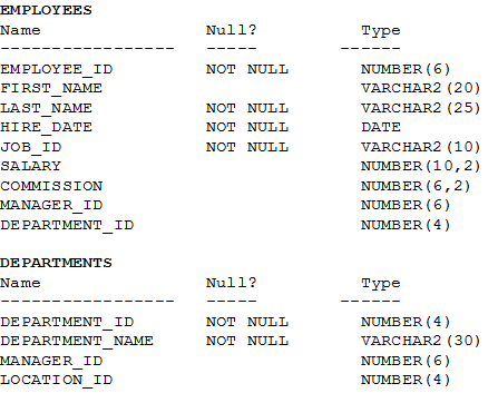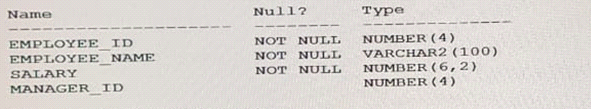 View the exhibit and examine the structures of the EMPLOYEES and DEPARTMENTS tables.