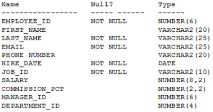 View the exhibit and examine the structure of the EMPLOYEES table.