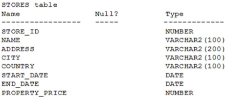 View the exhibit and examine the structure of the STORES table.