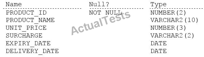 Examine the description of the PRODUCTS table: