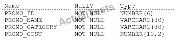 Examine the description of the PROMOTIONS table: