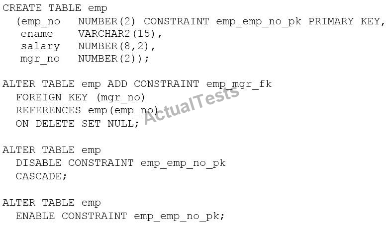 Examine these SQL statements which execute successfully: