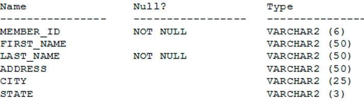 MEMBER_ID            NOT NULL        VARCHAR2 (6)