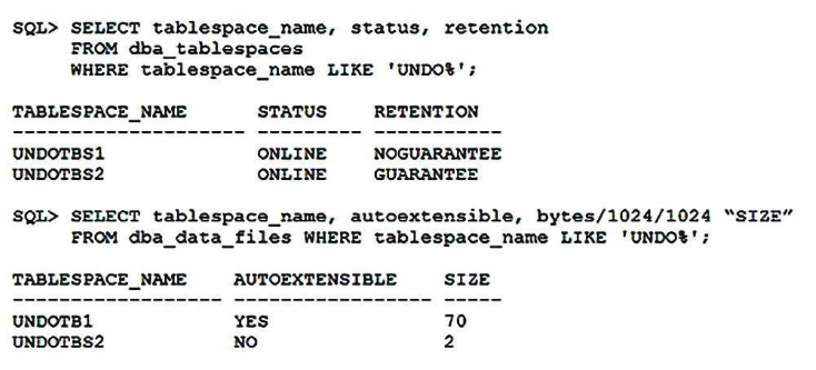 2. It returns an error because UNDOTBS2 is fixed size and has RETENTION GUARANTEE.