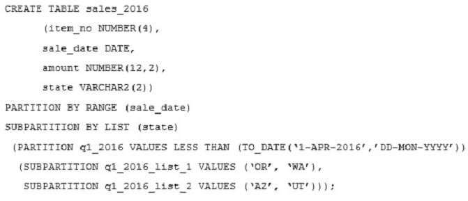 1. Two subpartitions are allocated to the q1_2016 partition when the first row is inserted into q1_2016.