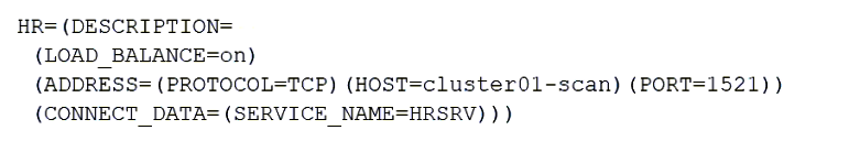 Examine this tnsnames entry from a RAC configuration using a SCAN listener: