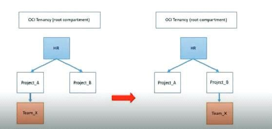 Your company has restructured its HR departments. As part of this change, you also need to re- organize compartments within Oracle Cloud Infrastructure (OCI) to align them to the company's new organizational structure. The following change is required: