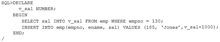 View the Exhibit to examine the PL/SQL block.
