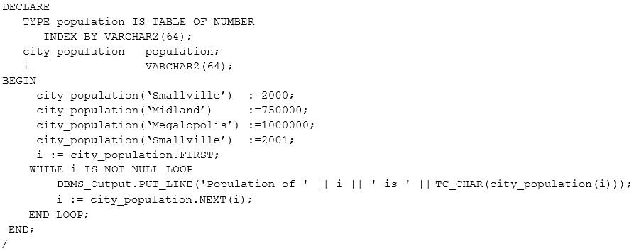 2. It does not execute because the definition of type population is indexed by VARCHAR2.