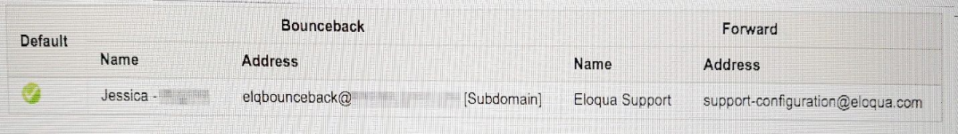 2. Your client must complete the Branded Bounceback Address Configuration Workbook and submit this to Oracle support. After Oracle has created the bounceback domain, the green check mark will appear in Assets> Email Setup> Email Defaults.
