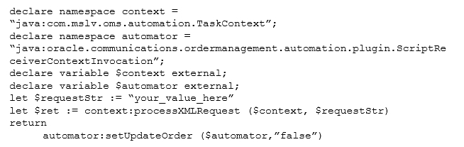 You configure an External Event Receiver XQuery Automator with the following incomplete lines of code in your automated task. To complete this implementation, you must substitute the value assigned to the $requestStr variable with another appropriate value. What could be the possible value for this variable?