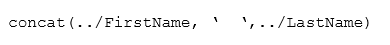 In a manual task, there are three text fields configured: FIrstName, LastName, and FullName. In the FirstName and LastName fields, a Constraint Behavior is configured. In the FullName field, a Calculation Behavior is added with the following XPath expression: