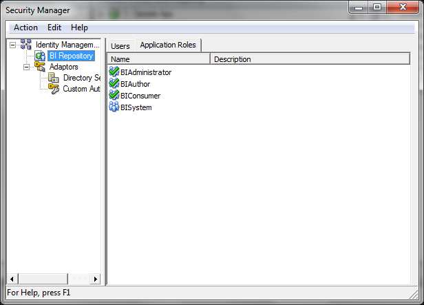 B: BI Server Security Manager accessed through the BI Server Administration Tool.