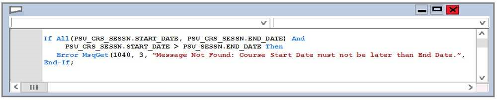 The following PeopleCode program compares two editable fields on a component.