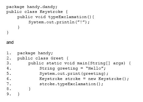 1. line 6 replaced with handy.dandy.keystroke stroke = new KeyStroke ( );