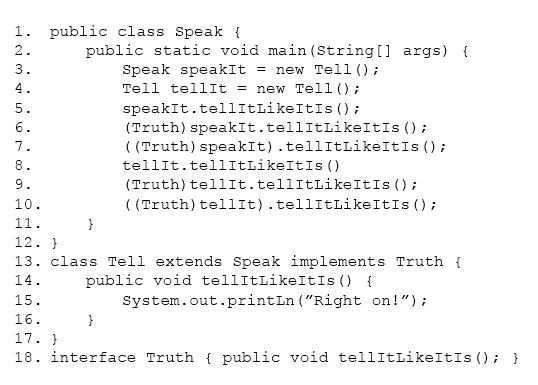 Which three lines will compile and output “right on!”?