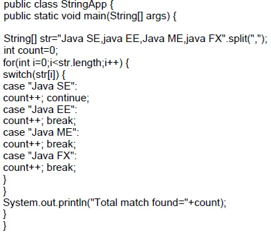 Java SE and Java ME will increase the count variable as it matches. java EE and java FX does not match.