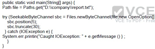 The truncate line will not change the file since the file size is less than 30.Reference: Interface SeekableByteChannel