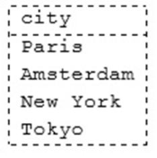 Type: enum(‘paris’.’Amsterdam’.’New York’.’Tokyo’)
