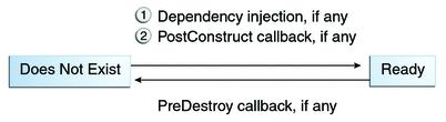 The EJB container typically creates and maintains a pool of stateless session beans, beginning the stateless session bean’s lifecycle. The container performs any dependency injection and then invokes the method annotated @PostConstruct, if it exists. The bean is now ready to have its business methods invoked by a client.