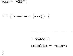 Which statement will return the value for results as 25.0 when it is put in place of the blank line shown above the “}else{” statement?
