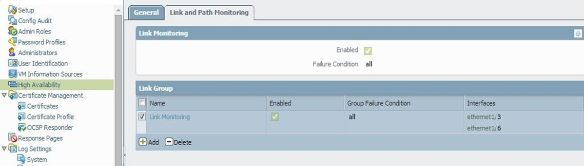 If the firewall has the link monitoring configuration, what will cause a failover?