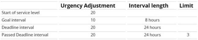 The service level provides a four-hour initial delay. If the case urgency is set to 10 and the case reaches the assignment at 9 A.M. Monday. what is the assignment urgency at noon Wednesday?