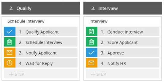 In the following partial case life cycle, a manager must contact a job applicant to schedule an interview. The interview should be scheduled within 2 business days after the manager qualifies the applicant, although 1 business day is preferable.