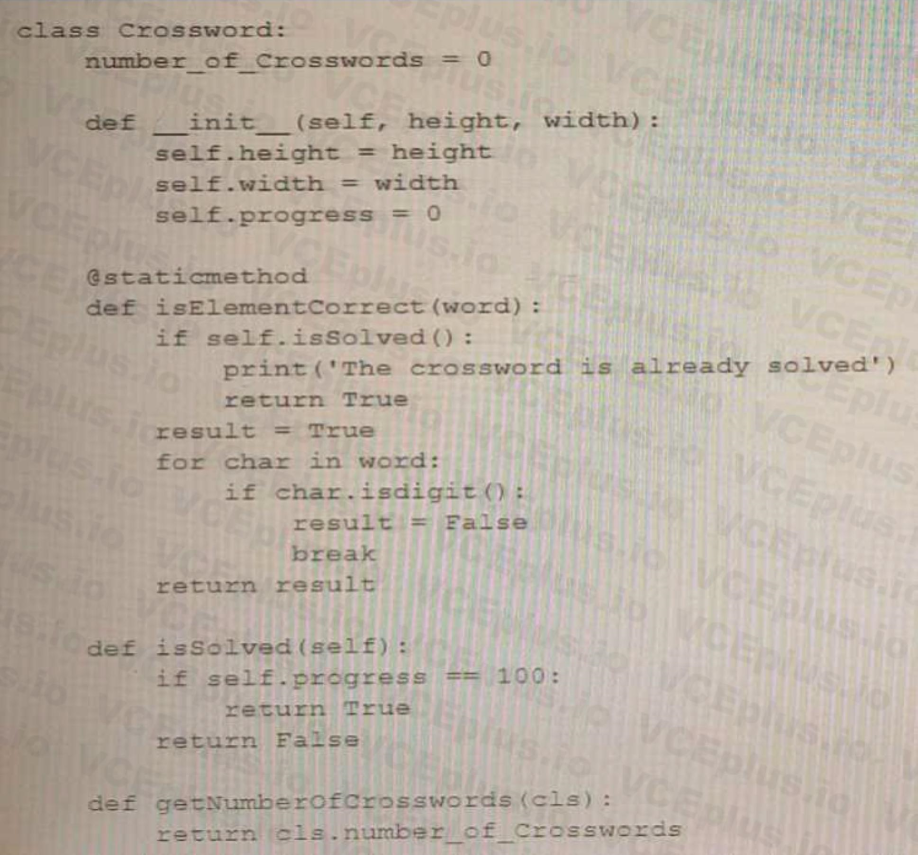 2. The getNumberofCrosswords () method should be decorated With @classmethod.