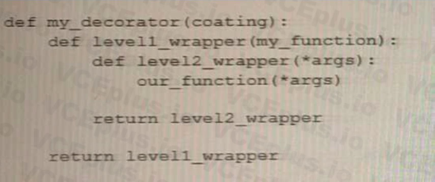 The provided code snippet represents an example of a decorator that accepts its own arguments.