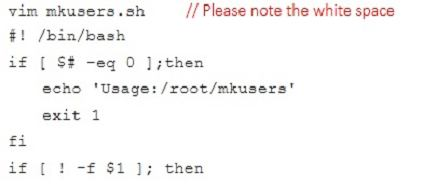 2. This script need provide the following message: Usage/root/mkusers if it does not provide a parameter, then exit and return the corresponding value