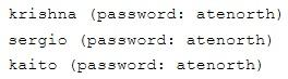 Password for both of the two systems is atenorth