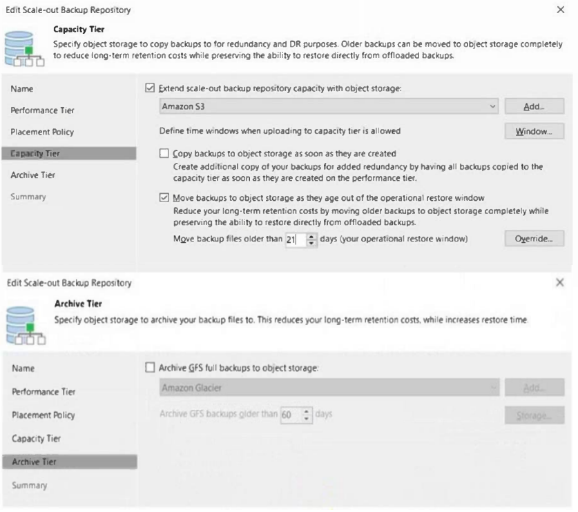 4. Add a capacity tier to the Scale-out Backup Repository and enable the "Move" option.