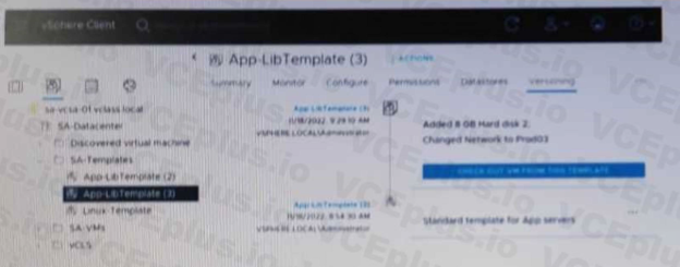 Option D is correct because it allows the administrator to delete only the latest version of the template by reverting to the previous version and then deleting the current version. Option A is incorrect because it deletes the entire template and not just the latest version. Option B is incorrect because it renames the previous version to the current version and does not delete anything. Option C is incorrect because it checks out the latest version and deletes it from the folder, but not from the library. Reference:https://docs.vmware.com/en/VMwarevSphere/7.0/com.vmware.vsphere.vm_admin.doc/GUID-9F9E3F8C-0E2B-4B6A-8C5C-3F8E5F6B4E9D.html