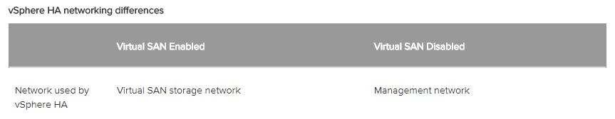 Which network is used by vSphere HA when VMware vSAN is enabled?