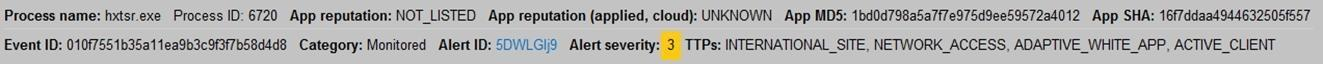 Upon further review of the event details returned, the reputation is observed as NOT_LISTED, and the applied (cloud) reputation is UNKNOWN.