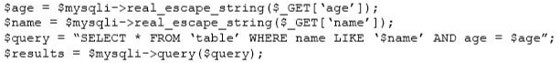 3. Yes, because the $name variable and the $age variable is improperly escaped.